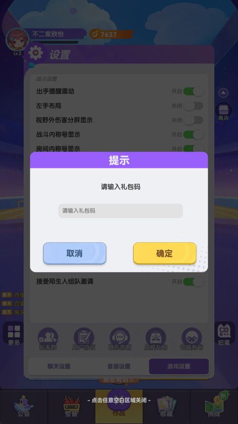 3、然后找到兑换礼包,在兑换框输入礼包码确定即可。