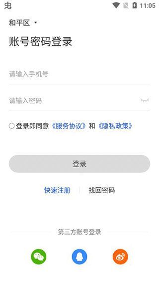 2、接着输入手机号、密码进行登录,没有注册的用户可先进行注册;