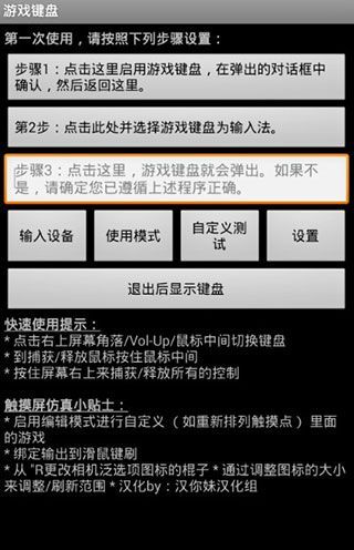 1、打开虚拟键盘手机版,上面标明了快速使用提示和触摸屏仿真提示;
