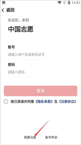 2、有账号的可以输入账号、密码登录,没有账号的点击“我要注册”;