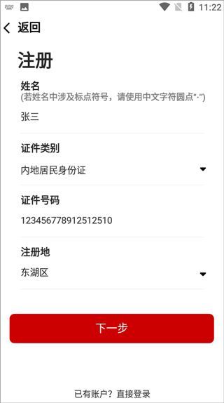 3、之后用户就需要输入姓名、身份号、注册地等等;