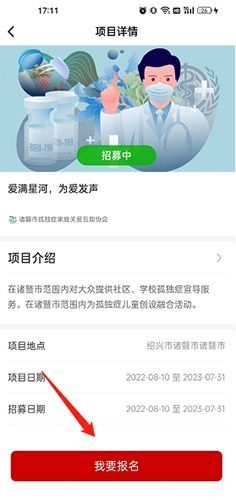2、进入项目详情,点击“我要报名”选项即可。